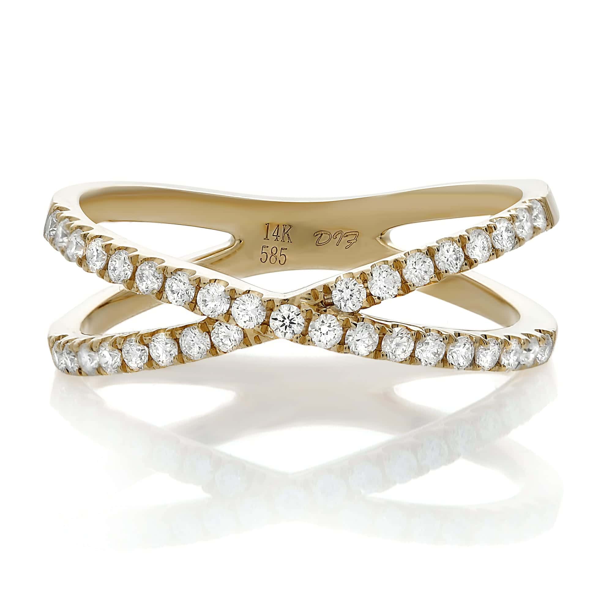 This modern band features 35 round brilliant cut natural diamonds weighing 0.32 total carats. This ring is currently finger size 4.
