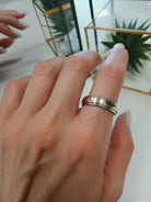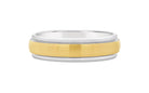 14K white and yellow gold band features a 6mm width with a satin-finish white gold centre and polished yellow gold edges. The two-tone contrast offers a clean, modern profile with subtle texture—ideal for everyday wear with timeless appeal. Size 10.