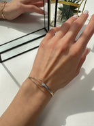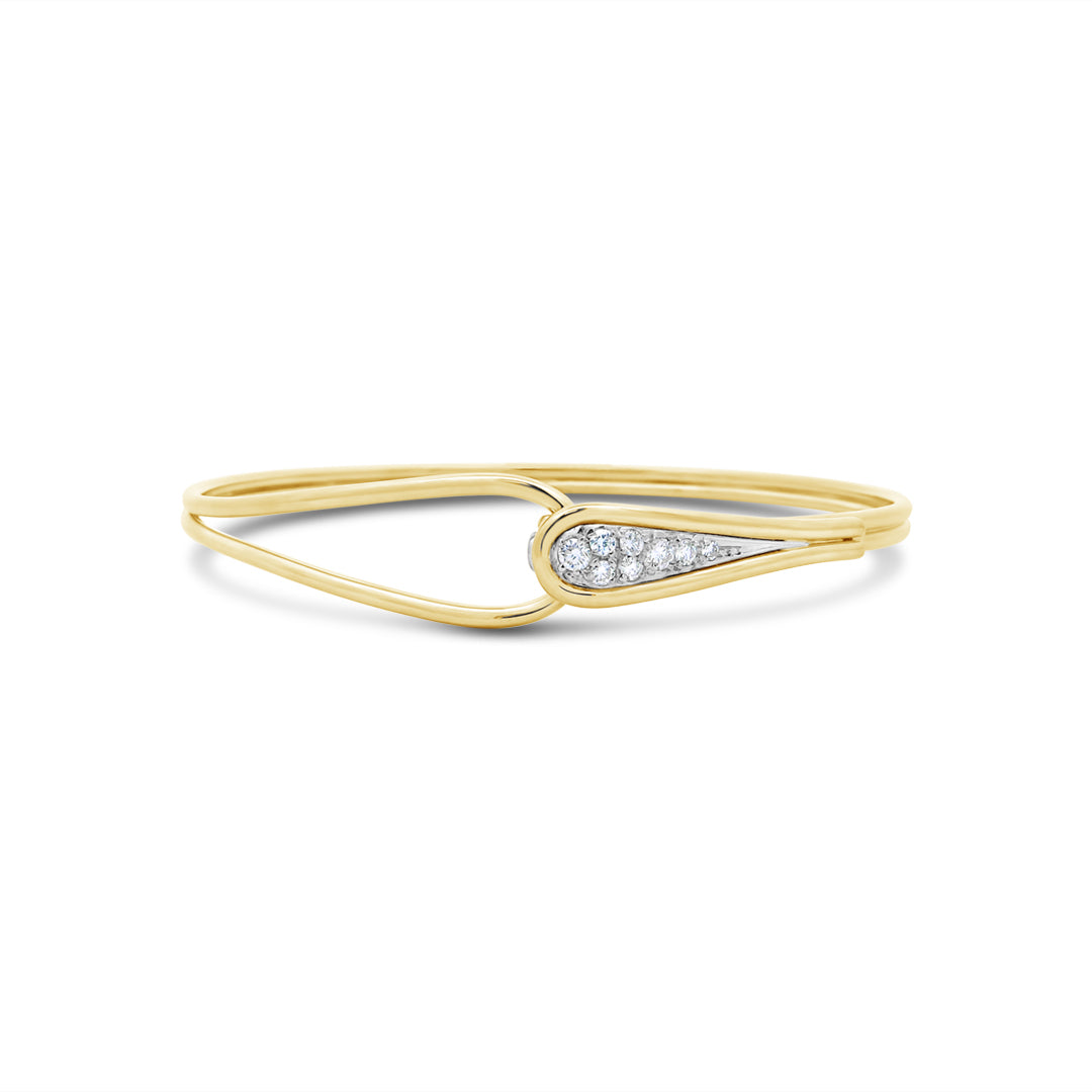 Elegant bangle bracelet is crafted in 18K yellow gold and platinum, accented with natural round diamonds totalling 0.18ctw in F–G colour and VS2 clarity. The sleek design offers a polished look with subtle brilliance for everyday wear.