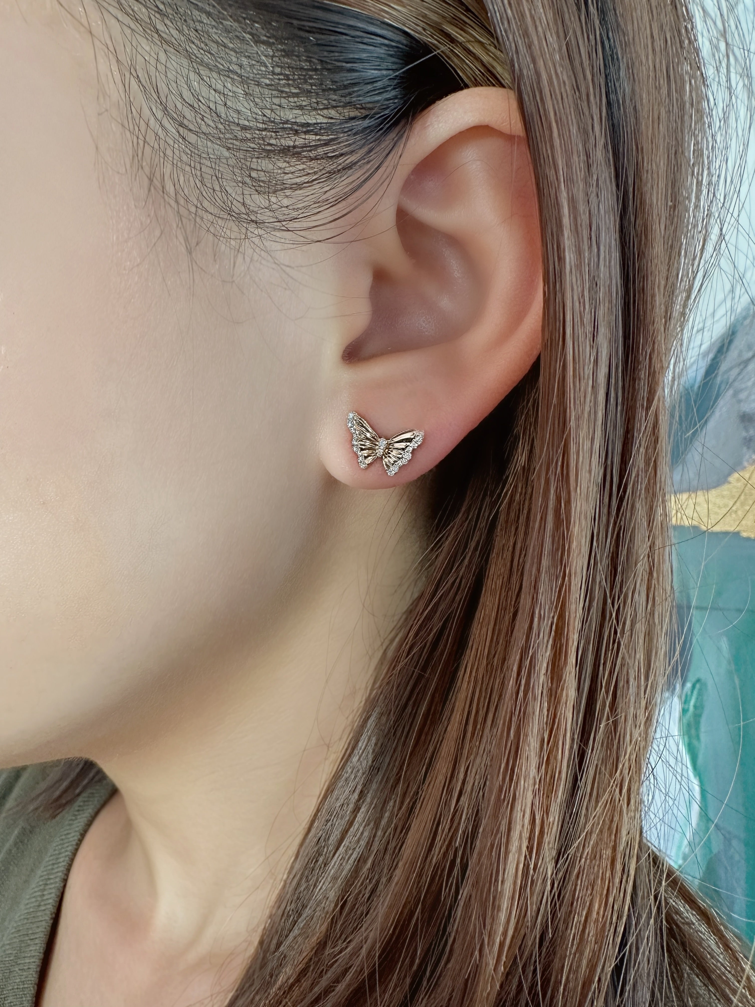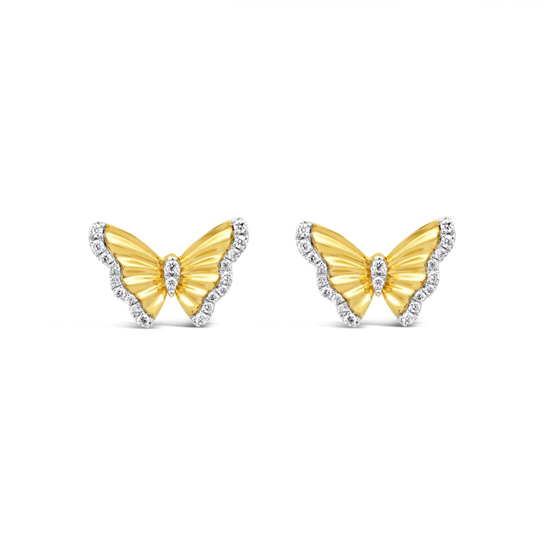 Charming 14K yellow gold earrings feature a delicate butterfly design set with forty round brilliant stones totalling 0.14ctw in G–H colour and VS–SI clarity. The fine detailing and soft sparkle create a light, feminine look with timeless appeal.
