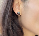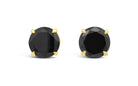 Dramatic 10K yellow gold stud earrings feature two round-cut black moissanites totalling 6.30ctw. With their deep opaque finish and mirror-like polish, they offer a bold, modern take on classic studs. A striking statement for those who favour edge and elegance.