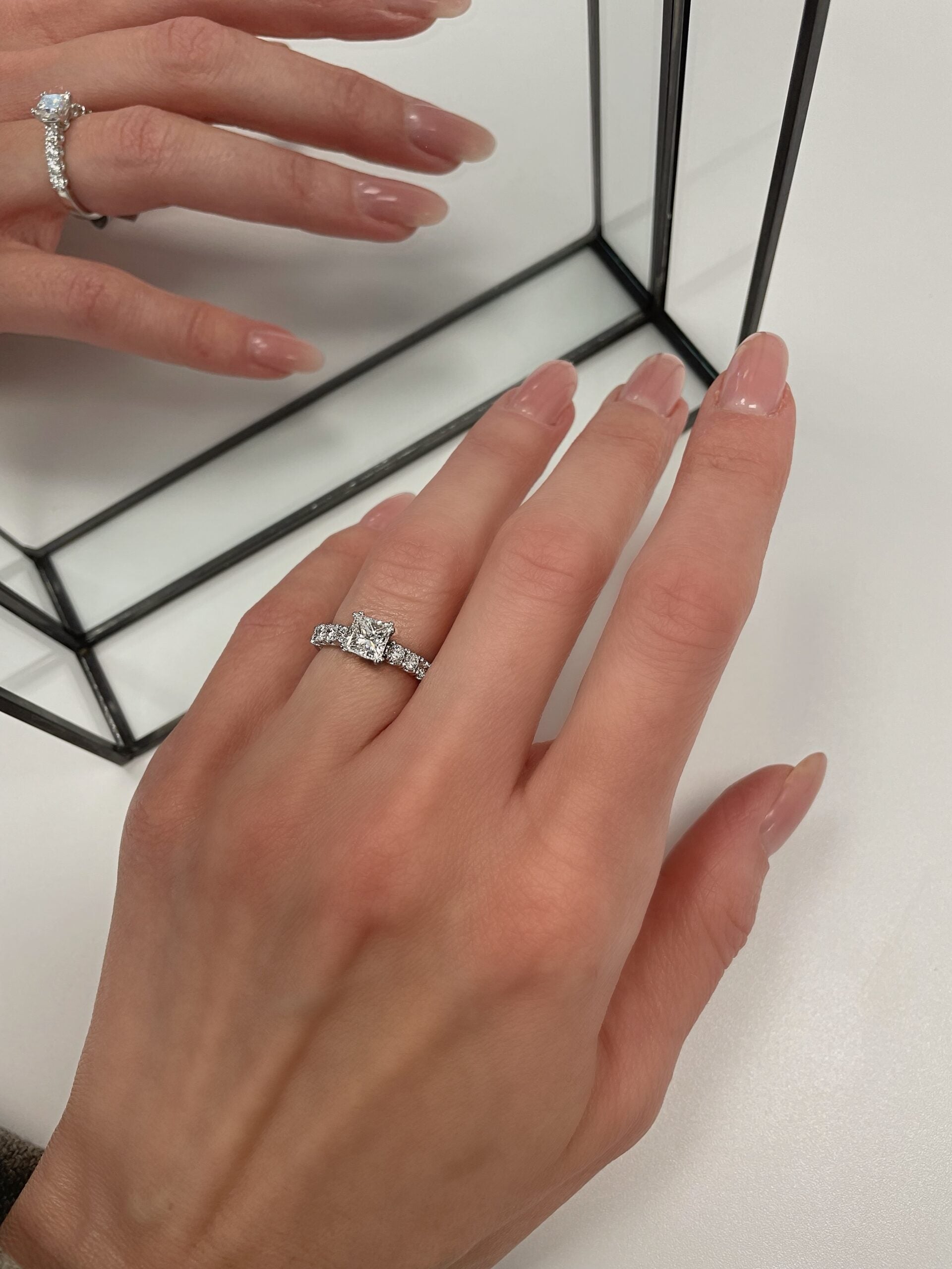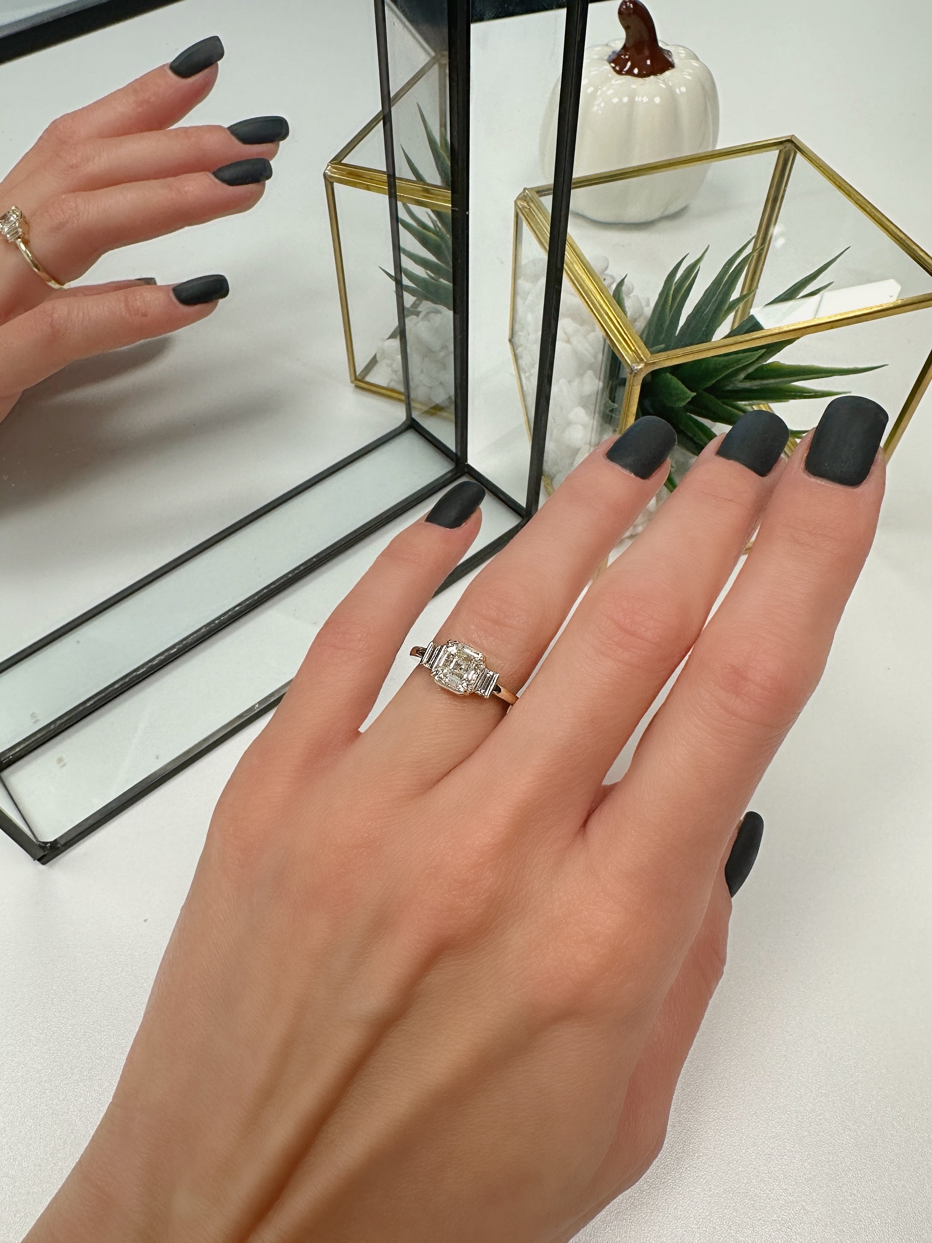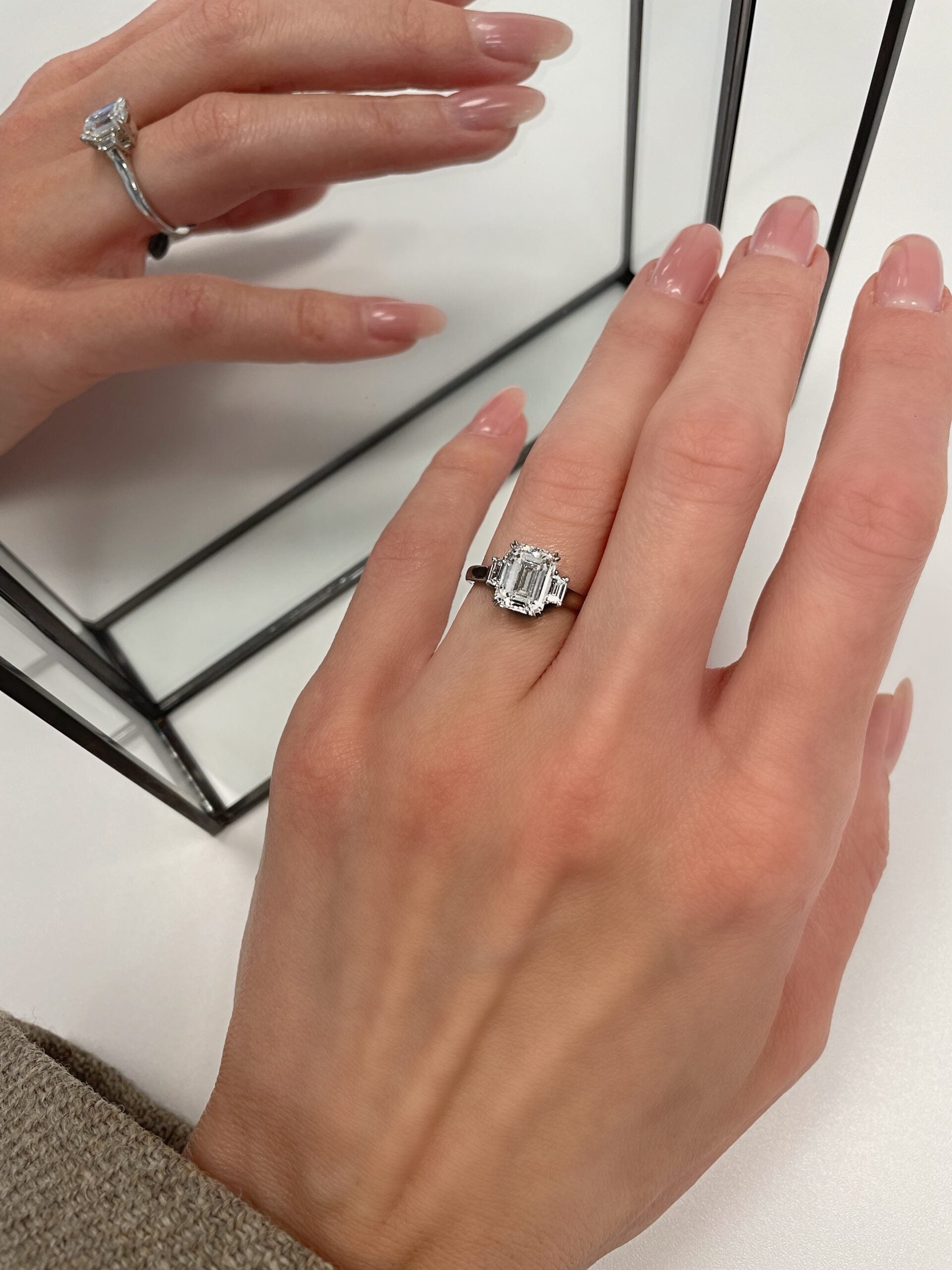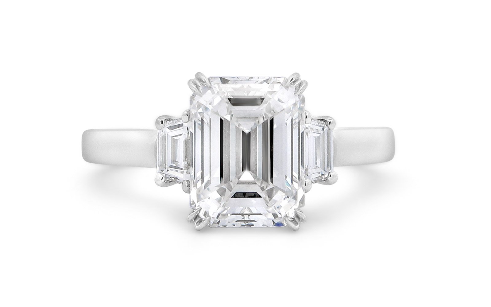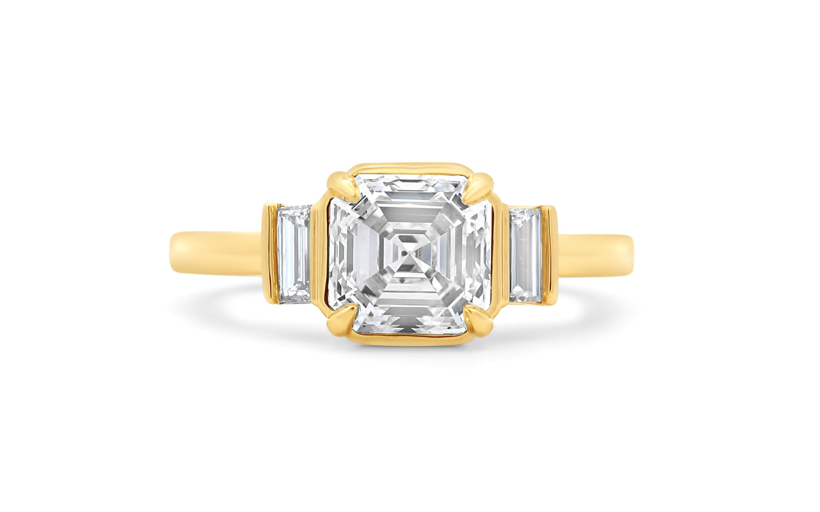 Natural Asscher Three- Stone Bar Engagement Ring