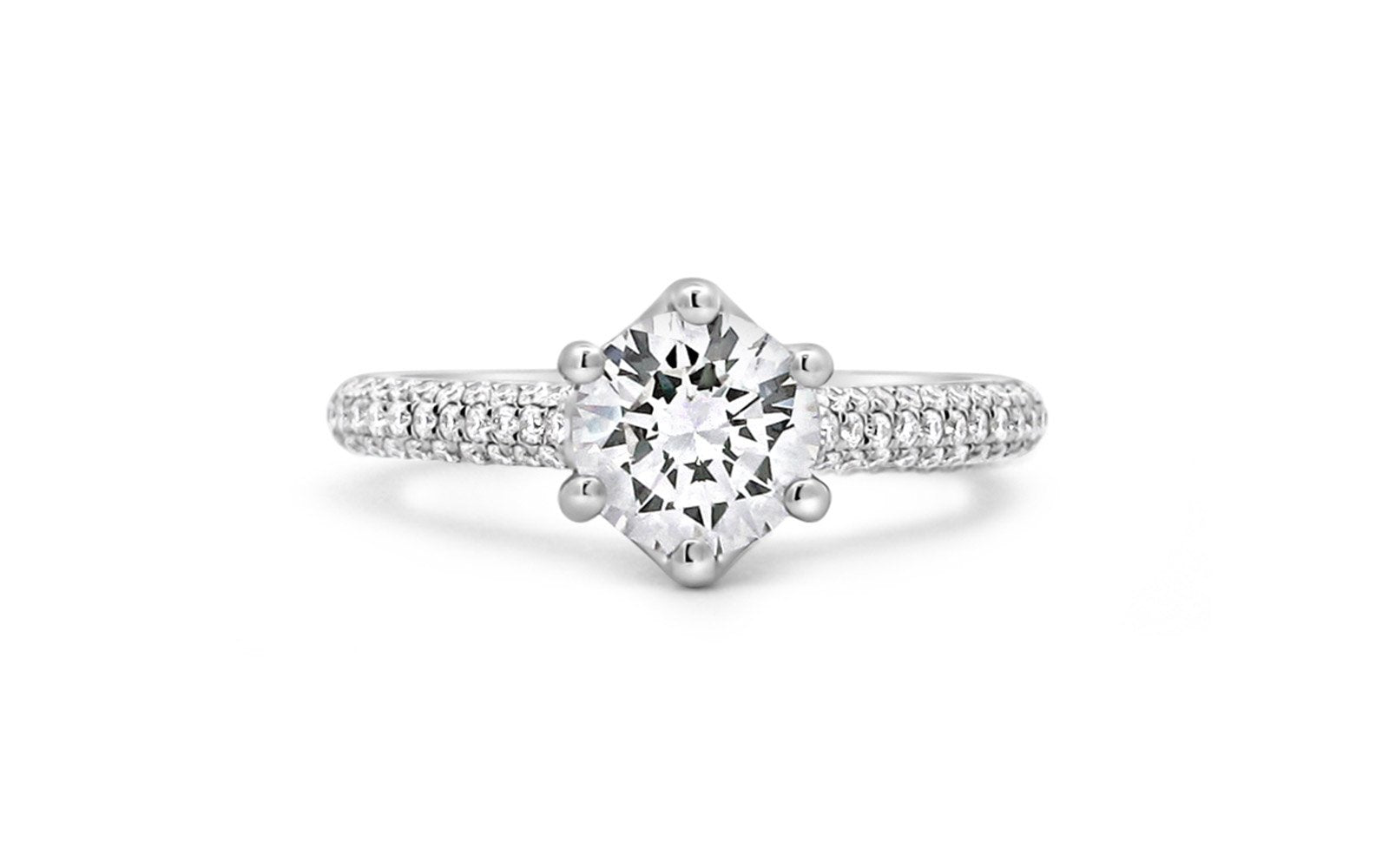 Natural Round Six-Prong Pavé Ring