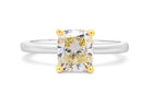 This elegant solitaire ring showcases a stunning 1.32ct cushion cut natural diamond, graded Fancy Light Yellow color and I2 clarity. Accentuating its brilliance, the classic setting enhances the diamond’s warm hue while allowing maximum light reflection. The combination of timeless simplicity and vibrant beauty provides a perfect balance of sophistication and shine. Size 5.25