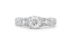 This elegant engagement ring showcases 0.94ct old mine cut natural diamond, graded K color and SI1 clarity. Accentuating its brilliance, a shimmering array of 42 round brilliant diamonds, totaling 0.66ctw and graded G-H color with SI-I1 clarity, adds extra sparkle. The combination of vintage charm and timeless craftsmanship provides a perfect balance of sophistication and shine. Size 6.75.
