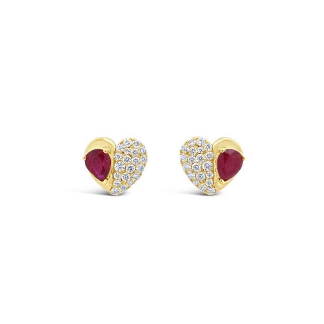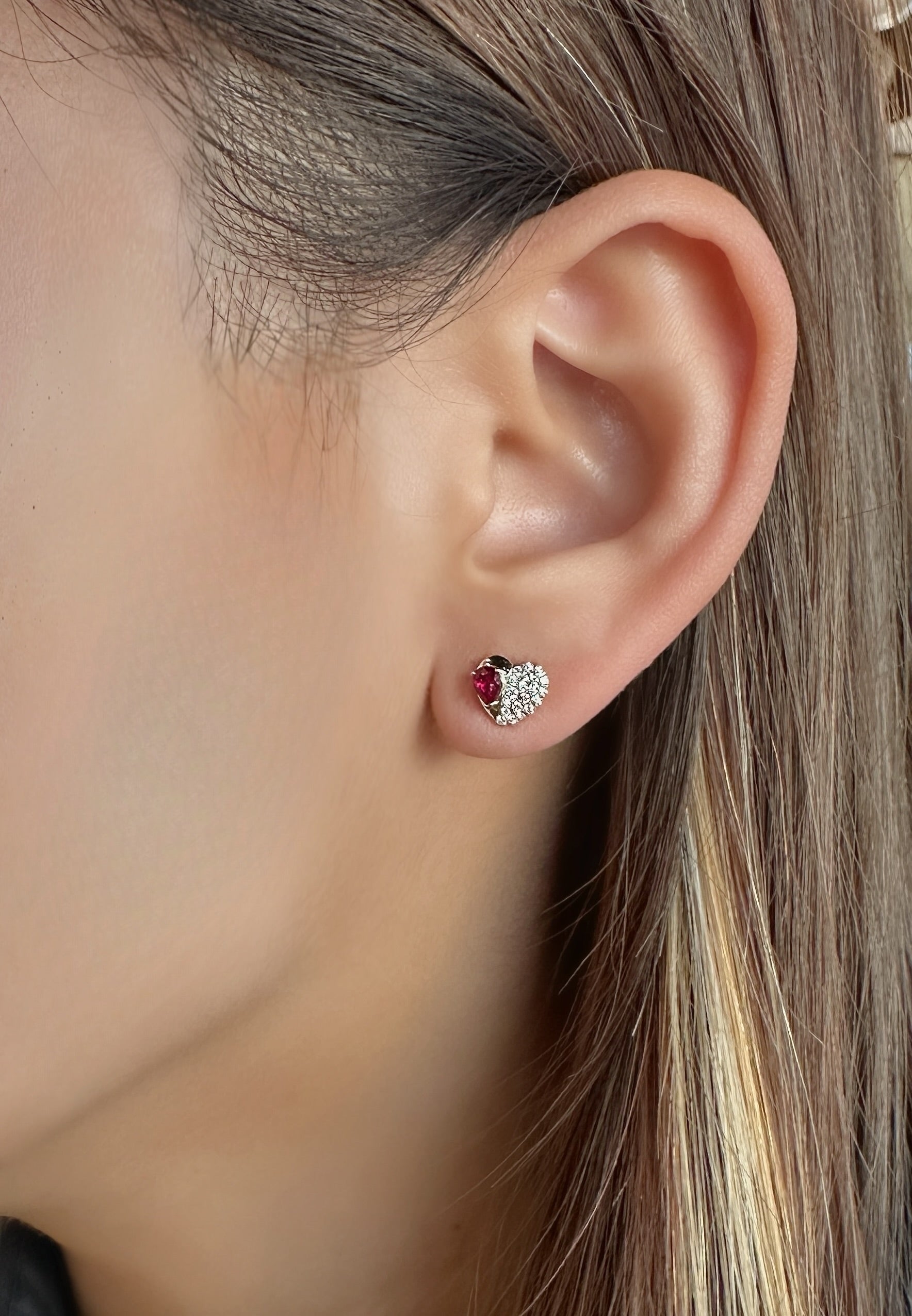 0.40ctw Natural Ruby and Diamonds Heart Stud Earrings
