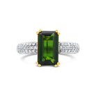 Sophisticated 14K yellow gold band features one 2.25ct dark green emerald-cut diopside, accented by thirty-eight round brilliant stones totalling 0.28ctw in G–H colour and VS–SI clarity. The deep green centre stone is beautifully complemented by sparkling diamonds, creating a striking and refined design for everyday or special occasions.