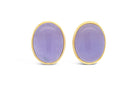 Striking 14K yellow gold stud earrings feature two oval cabochons of natural lavender jade totalling 18.00ctw. Their serene hue and smooth polish evoke calm elegance, making them a timeless statement of subtle colour and refined taste.