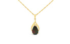 Striking 14K yellow gold pendant showcases a vivid Korite pear-shaped ammolite measuring 18mm by 11mm. The stone displays brilliant flashes of green, red, and gold, with each natural pattern entirely unique. A bold and iridescent statement rooted in Canadian heritage.