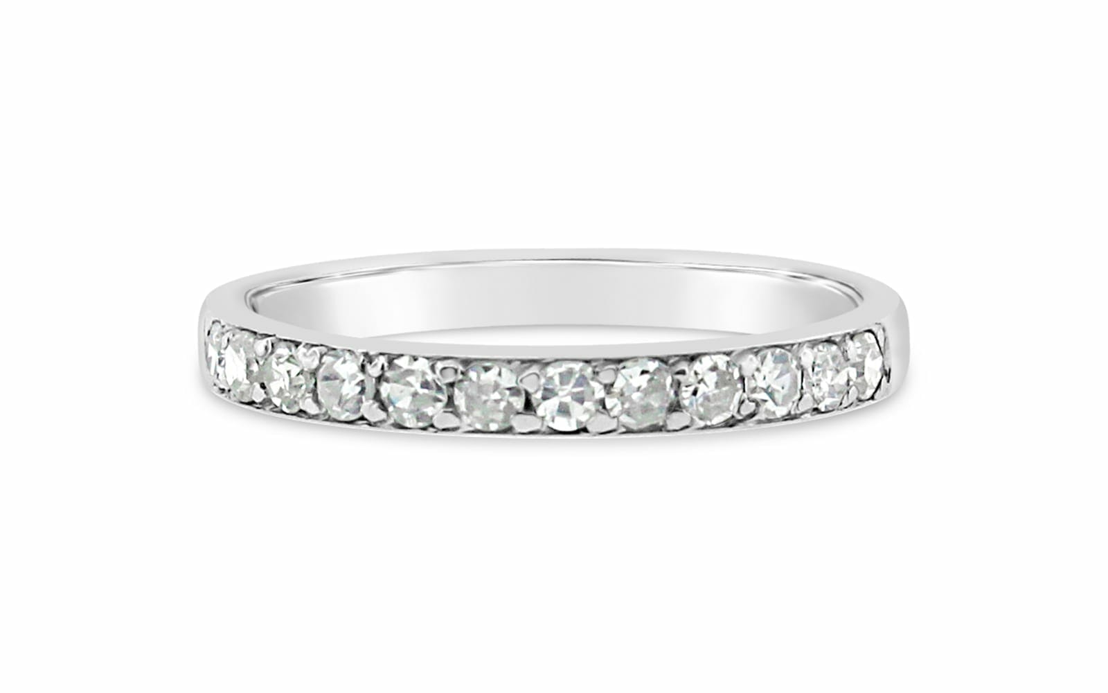 This beautiful platinum band features 12 round brilliant diamonds, 0.42 total carat weight, bead-set to maximize their sparkle.