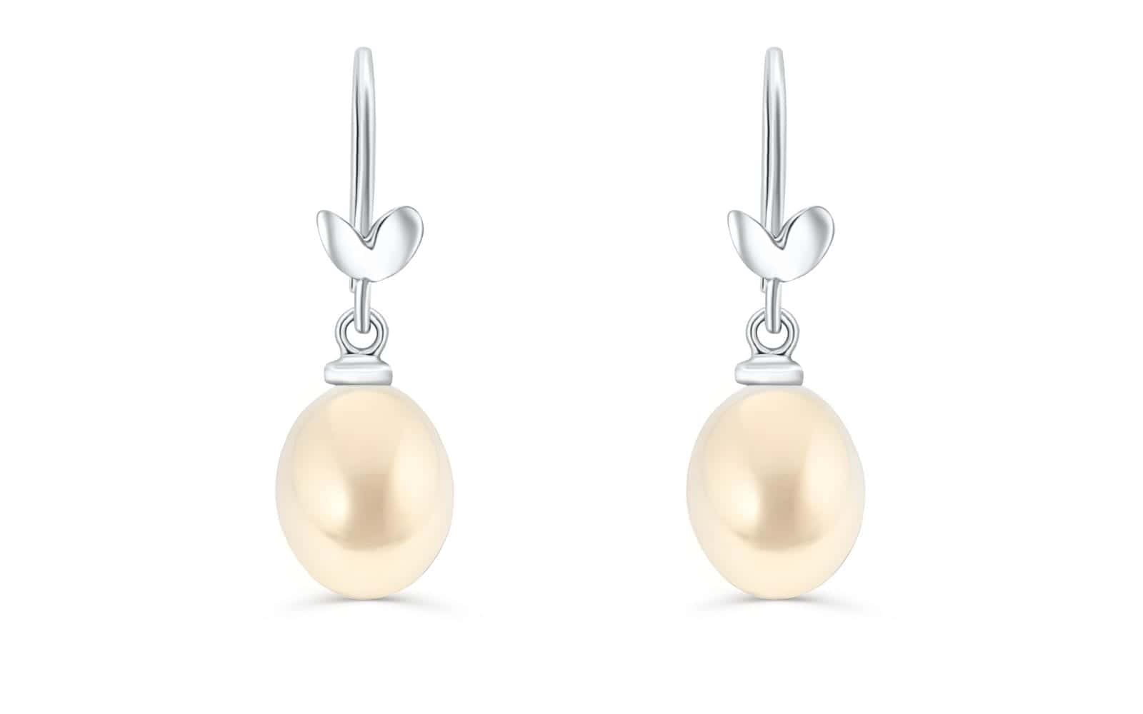 Natural Pearl Olive Leaf Drop Earrings