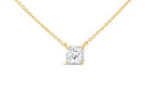 14K yellow gold solitaire necklace showcases a stunning 1.09ct radiant-cut diamond in GH colour and SI2 clarity. Its classic solitaire design highlights the brilliance of the diamond, creating a timeless and sophisticated look on a 15-inch chain.
