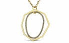18K yellow gold necklace features a geometric pendant set with 62 natural round diamonds totalling 0.62ctw in G–H colour and VS–SI clarity. The modern geometric design showcases clean lines and sparkling detail, creating a contemporary and sophisticated piece.