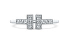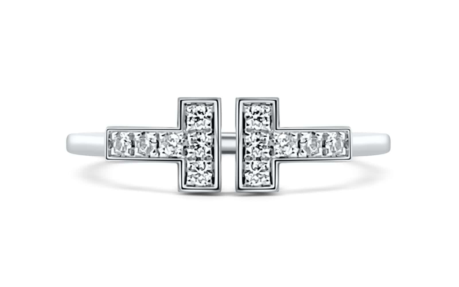This elegant 18kt white gold Tiffany & Co. T band features 12 round brilliant cut natural diamonds total 0.12ctw. This ring is finger size 6.5.