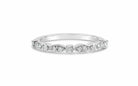 18kt white gold band features 13 round brilliant diamonds, 0.20 total carat weight, G-H colour, VS-SI clarity, with alternating faux-marquise shapes to give it a unique feel.