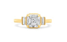 Exquisite yellow gold engagement ring features a captivating 1.91ct asscher-cut natural centre stone in I colour and VVS1 clarity. Flanked by two straight baguette side stones totalling 0.20ctw in H–I colour and SI clarity, the design offers perfect symmetry and refined brilliance.
