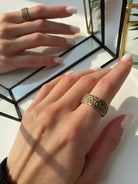 Bold 14K yellow gold band features a 9 millimetre Euro wicker weave design with intricate texture throughout. The detailed woven pattern creates depth and dimension while maintaining a refined and timeless presence. Size 10.