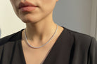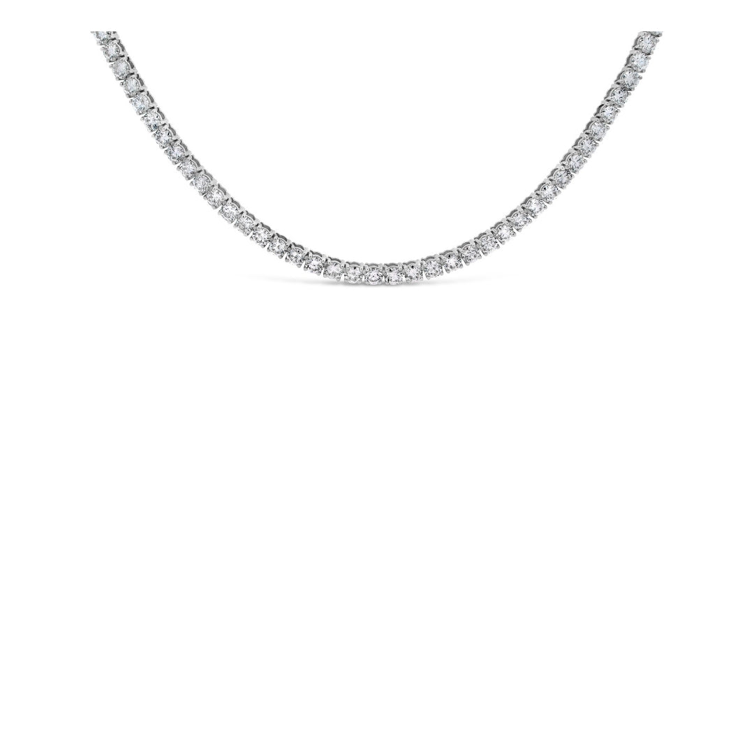 Refined 14K yellow gold tennis necklace features lab-grown round brilliant diamonds totalling 12ctw in E–F colour and VVS–VS clarity. The meticulously matched stones create a continuous, sparkling line, offering timeless sophistication for any occasion. Length 17".