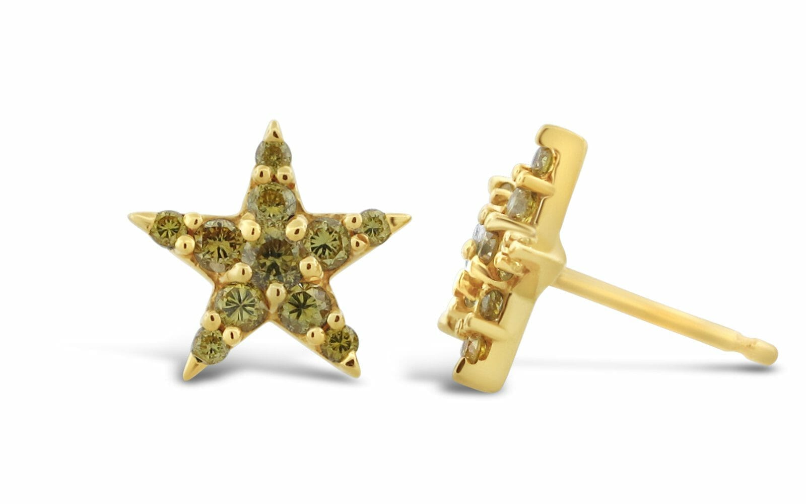 Set in 18kt yellow gold, these 0.38 total carat round brilliant fancy yellow mined diamond studs are simply magnificent! A perfect gift for yourself or others.
