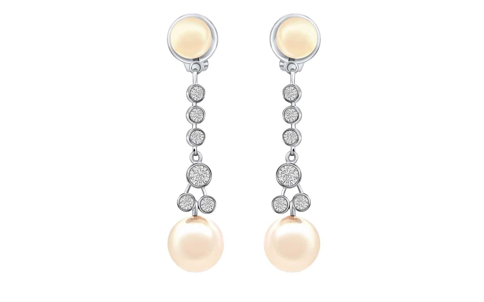 Set in 14kt white gold, these drop earrings feature 4 cultured pearls and 12 round brilliant cut natural diamonds.