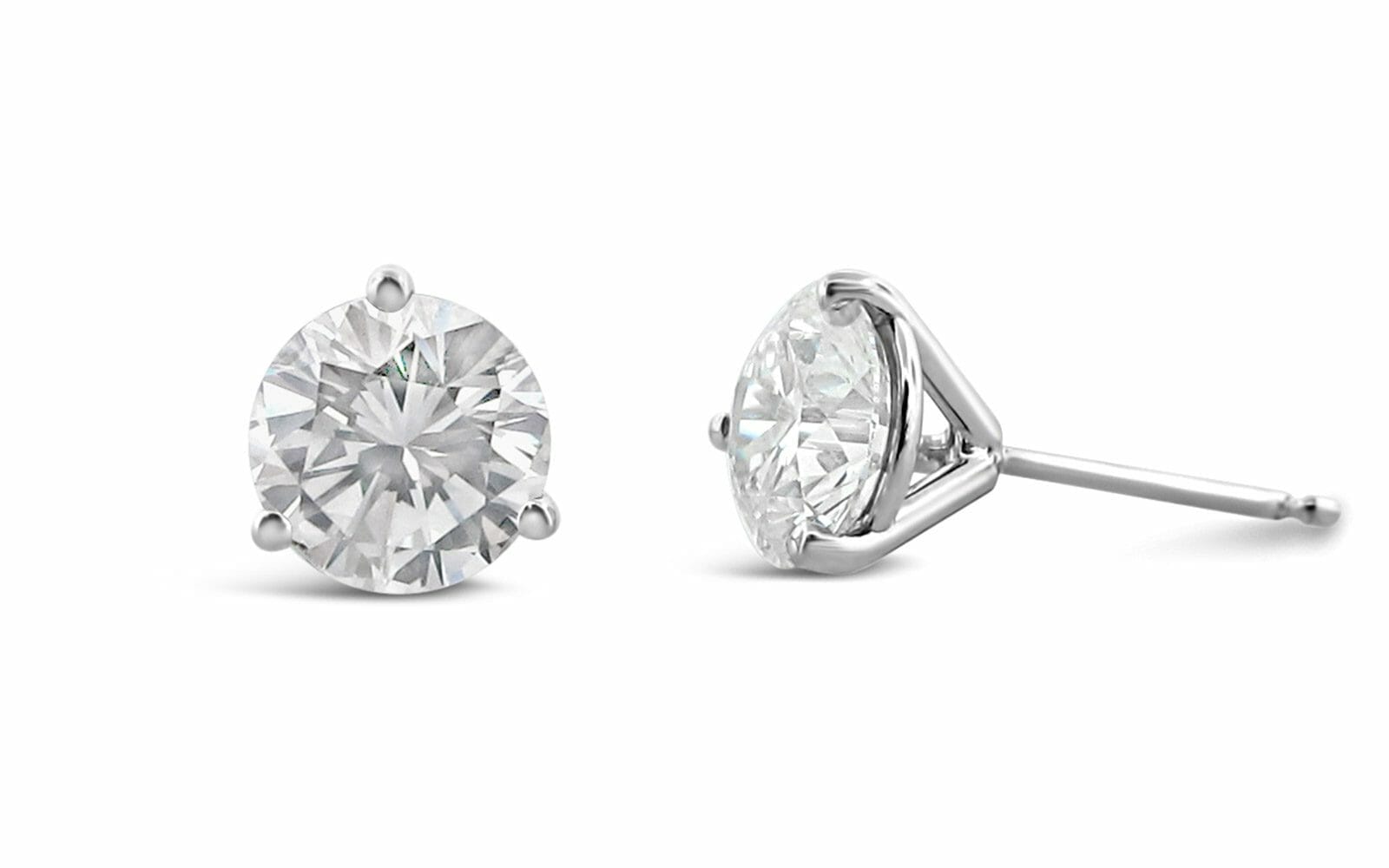 Set in 14 karat white gold, this pair of 1.22 total carat mined diamond studs GIA certified triple excellent, and features a three prong martini style setting! A perfect gift for yourself or others.