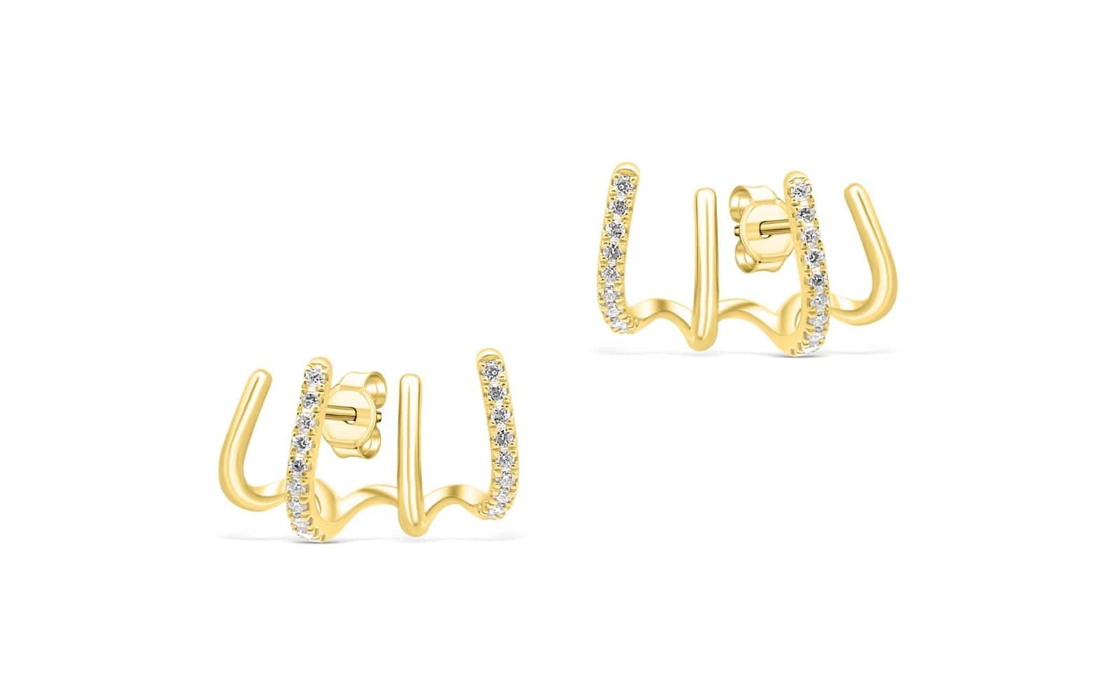 Set in 14 karat yellow gold, these hoop earrings feature 38 diamonds totaling 0.68 carats.