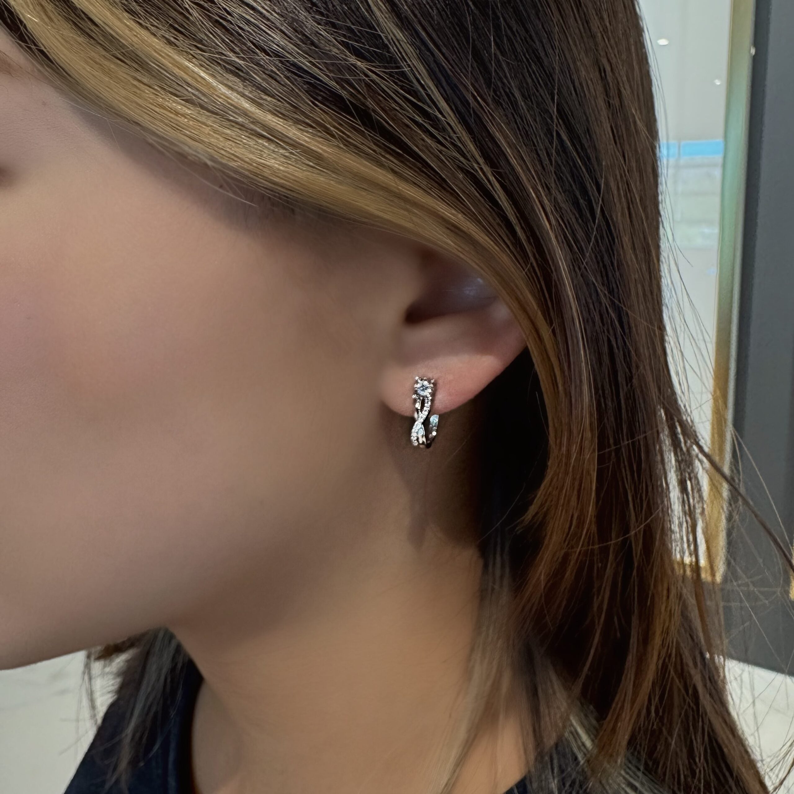 Elegant 10K white gold dangle earrings feature 14 round stones 0.15ctw in H–I colour and I1–I2 clarity. Designed to catch the light with every movement, they offer a graceful balance of sparkle and fluidity—perfect for evening wear or refined daytime glamour.