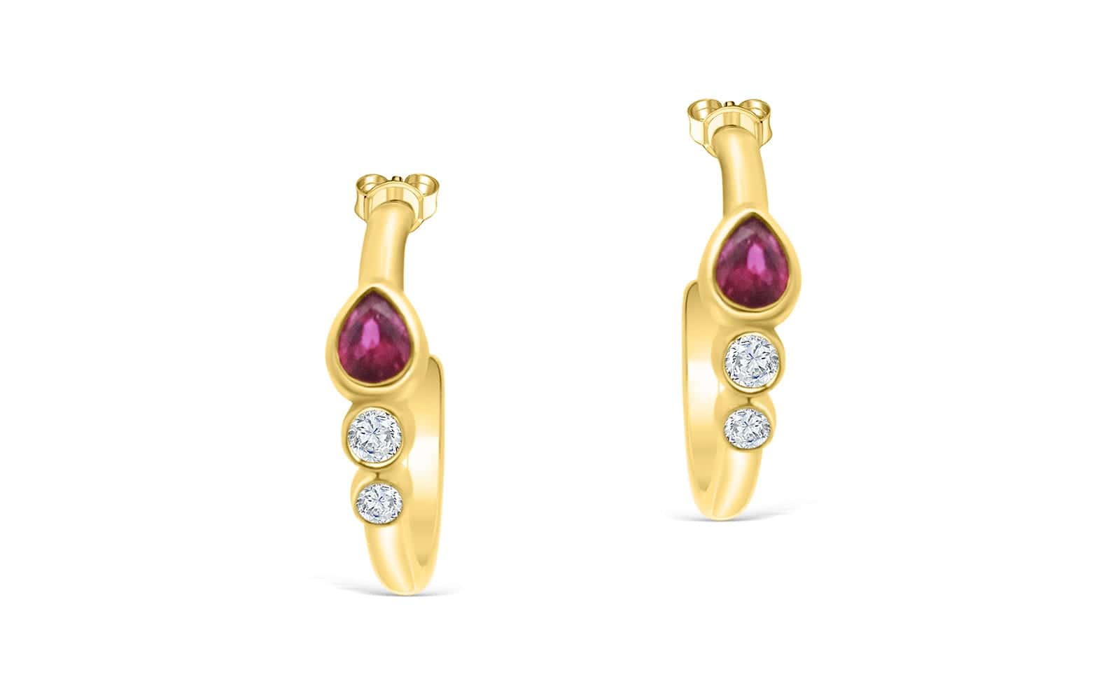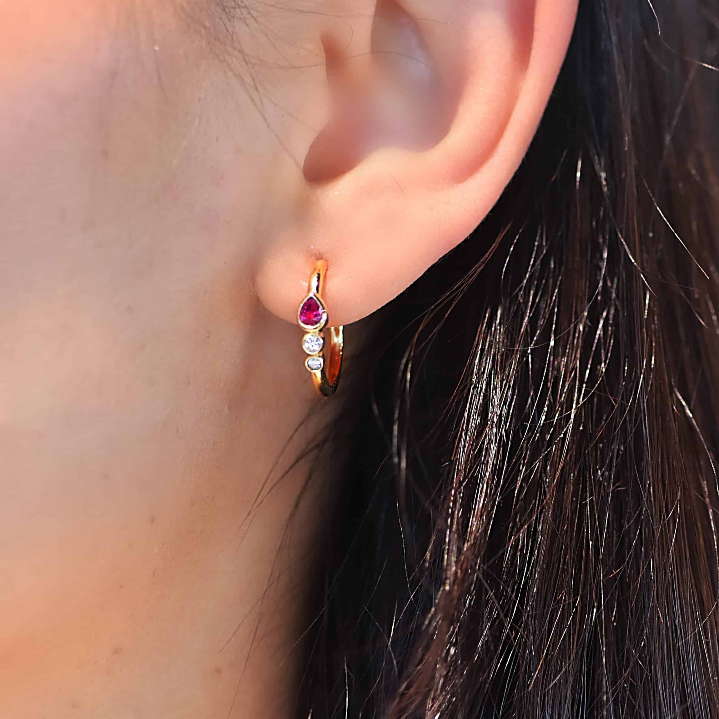 0.35ctw Natural Pear Ruby and Diamonds Hoop Earrings
