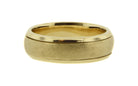 A classic 14K yellow gold band with a matte swirl finish center that spins around a polished platform for a unique twist.